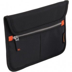 The black, water-resistant Slim 8 Tablet Sleeve holds up to an 8" tablet inside a soft, padded interior compartment with a dual-snap flap closure. For your accessories, it features a front pocket with an exterior visible metal zipper and an orange interior for easy visibility. To comfortably carry the sleeve, there is a convenient rear hand strap.