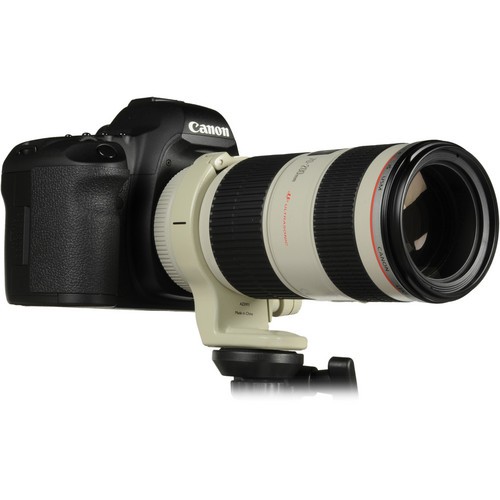 The Tripod Collar A (White) for Canon 200mm f/2.8, 70-200mm f/4 & 400mm f/5.6 Lenses from Vello is designed for use with the Canon 200mm f/2.8L II, 70-200mm f/4L (IS and non-IS versions) and 400mm f/5.6L lenses. The ring makes rotating your lens easier, and the built-in tripod collar improves lens balance by screwing into the tripod mount. This collar has vertical alignment marks for quickly changing the orientation from horizontal to vertical. Using the included bushing, either a 3/8"" or a 1/4"" tripod mount can used.