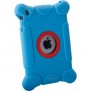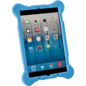 The Xuma Rugged Case for iPad mini in blue is made from heavy-duty silicone and features reinforced corners for shock absorption. There is also a lip on the front of the case that wraps around the edges of the touchscreen for added protection. The exterior of the case resists slips and lets you get a firm grip. On the back there is a circular cutout with red accent that lets the Apple logo show through. Additionally, you can access all the ports, buttons and cameras on your iPad through the case.
